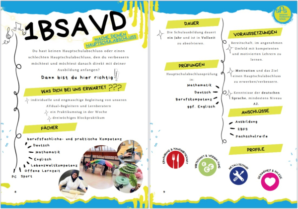 Der Hauptschulabschluss berechtigt bei entsprechendem Notendurchschnitt an der Teilnahme der zweijährigen Berufsfachschule 2BFS (Profil Gesundheit und Pflege, Ernährung und Hauswirtschaft oder Wirtschaft und Verwaltung) mit dem Ziel der Fachschulreife. Des Weiteren steht mit dem Erwerb des Hauptschulabschlusses Ausbildung zum Alltagshelfer/-in offen.